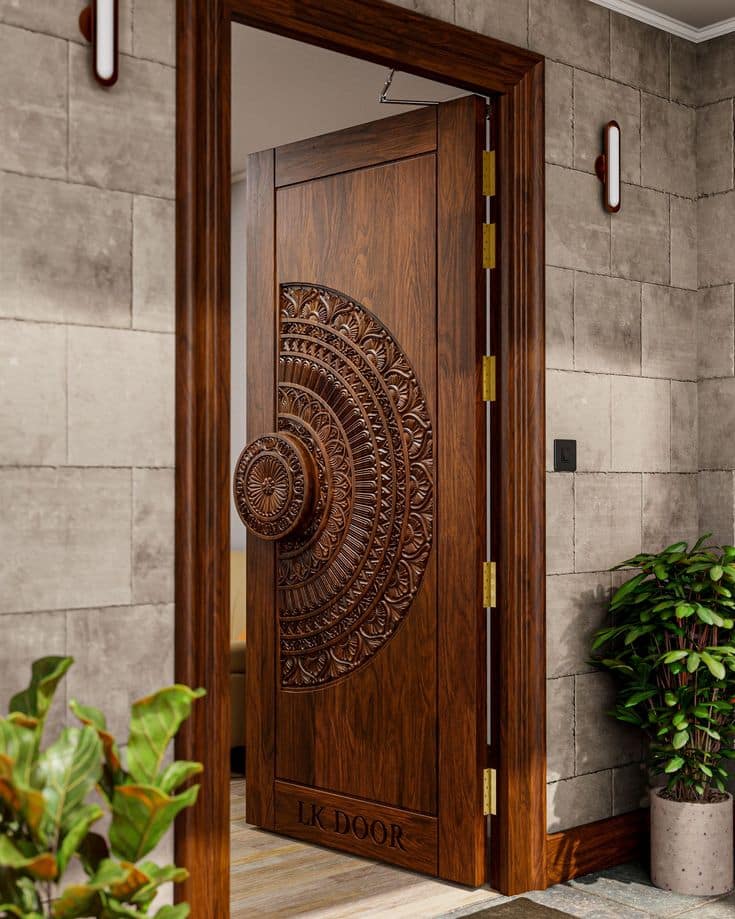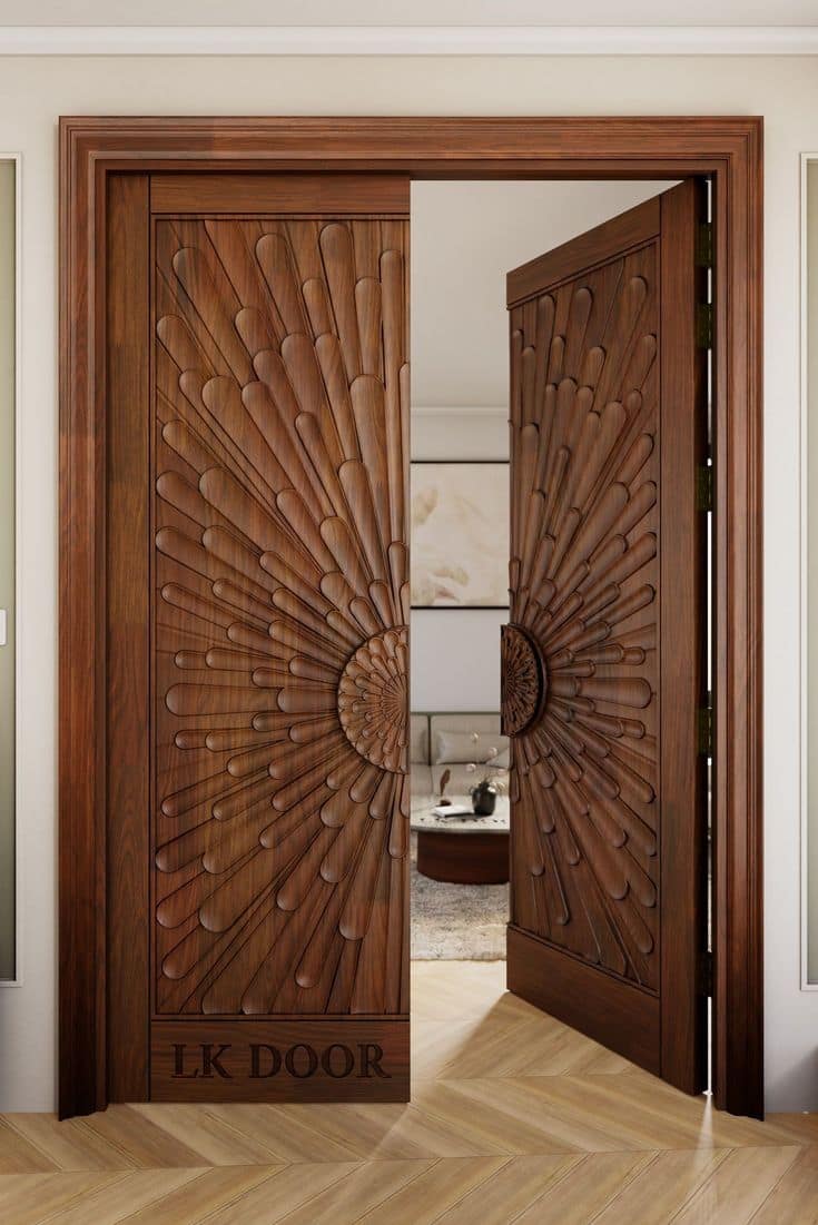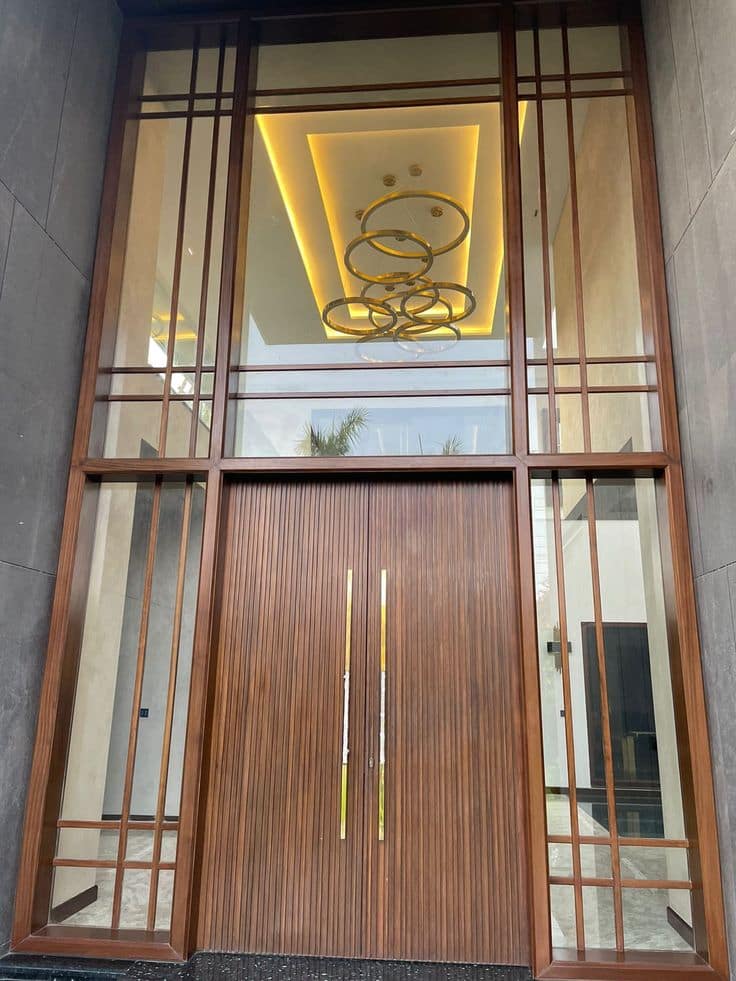 Premium teak doors known for strength, moisture resistance, and longevity, ideal for Dubai villas.